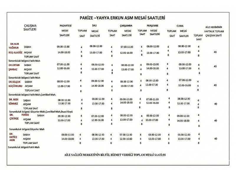 Aile hekimi; yaş veya cinsiyeti ne olursa olsun,kişiyi bir bütün olarak incelemek için eğitilmiştir. Akut ve kronik hastalıkların tedavi edilmesine ek olarak, hastalıkların gelişmesini önlemek amacıyla düzenli sağlık taramalarını gerçekleştirir ve sağlıkla ilgili konularda danışmanlık hizmetini sağlar.